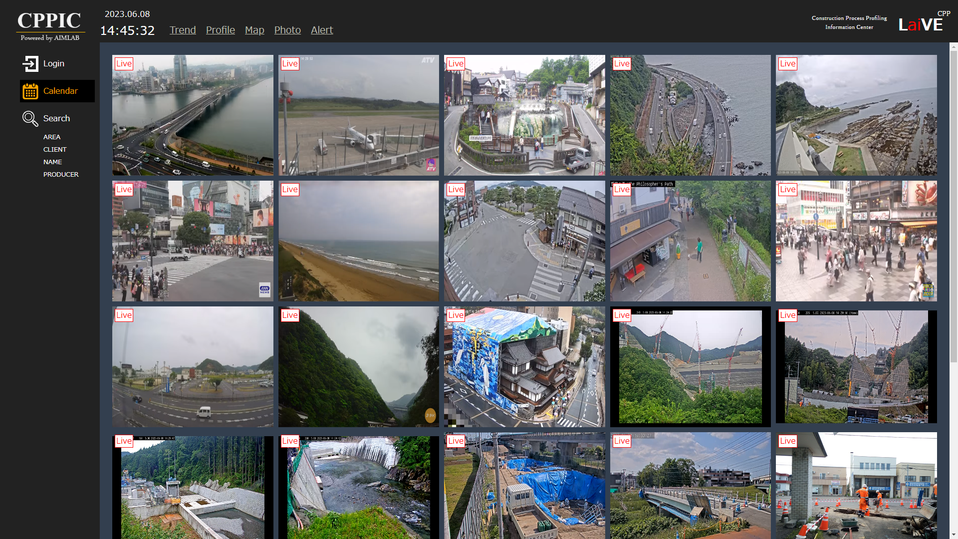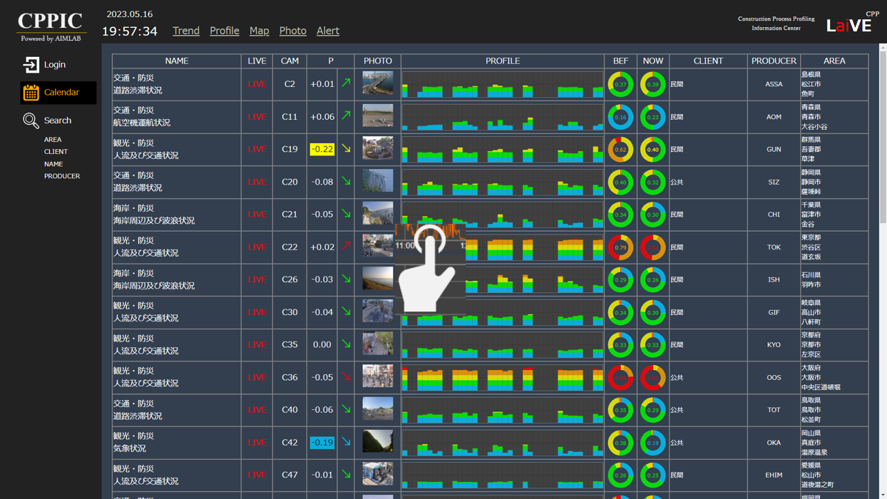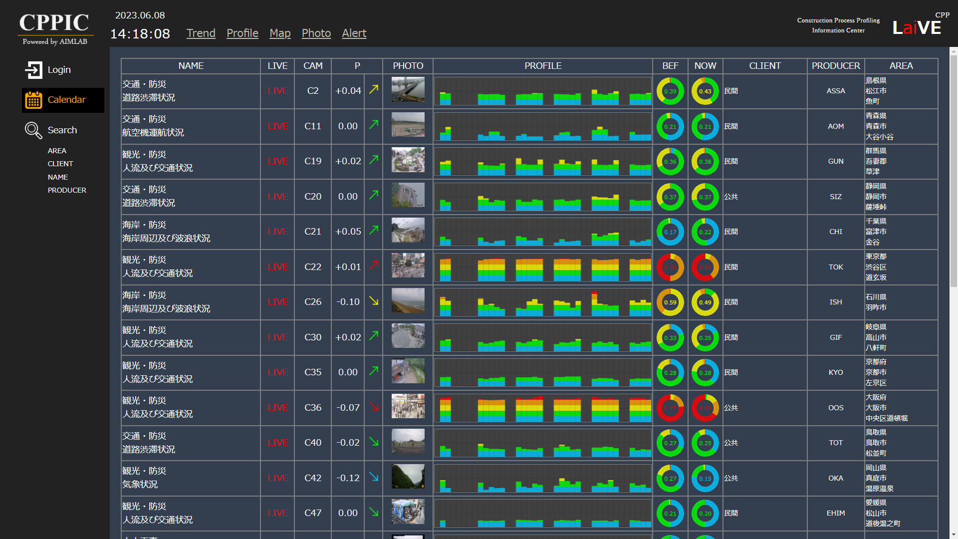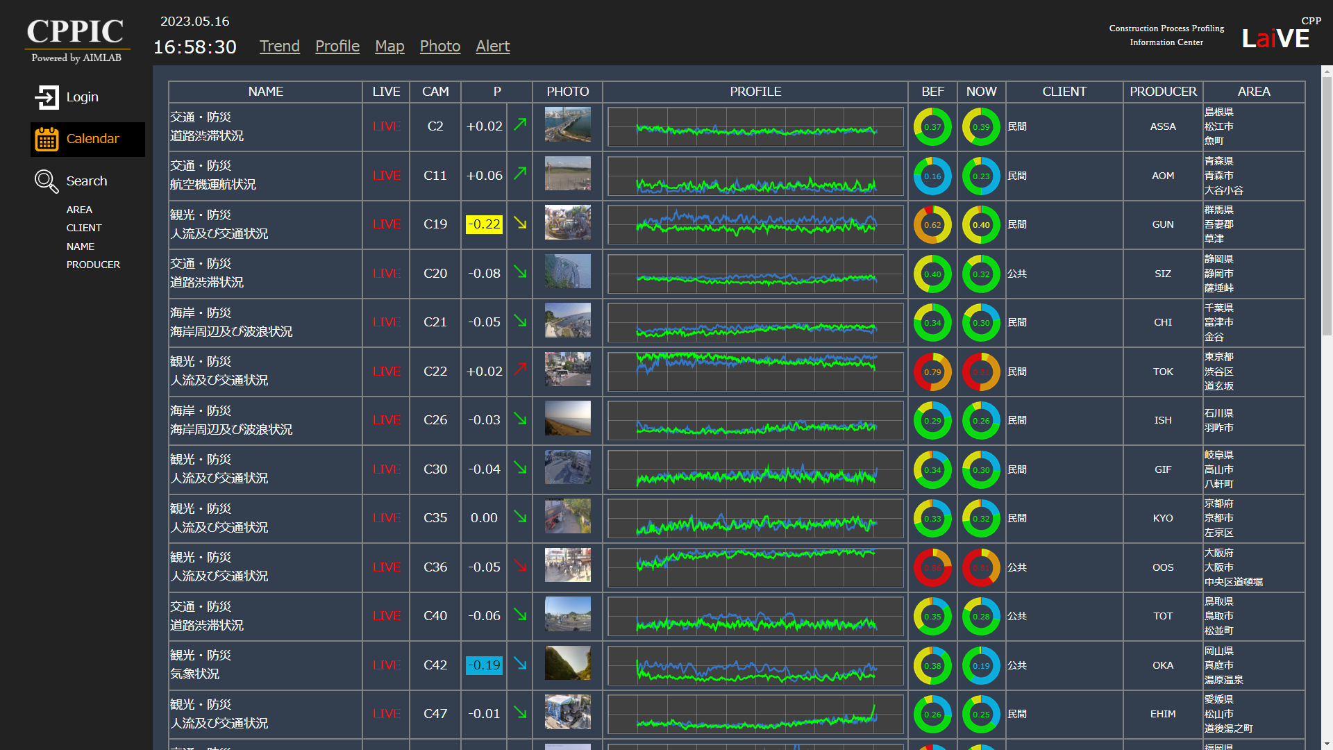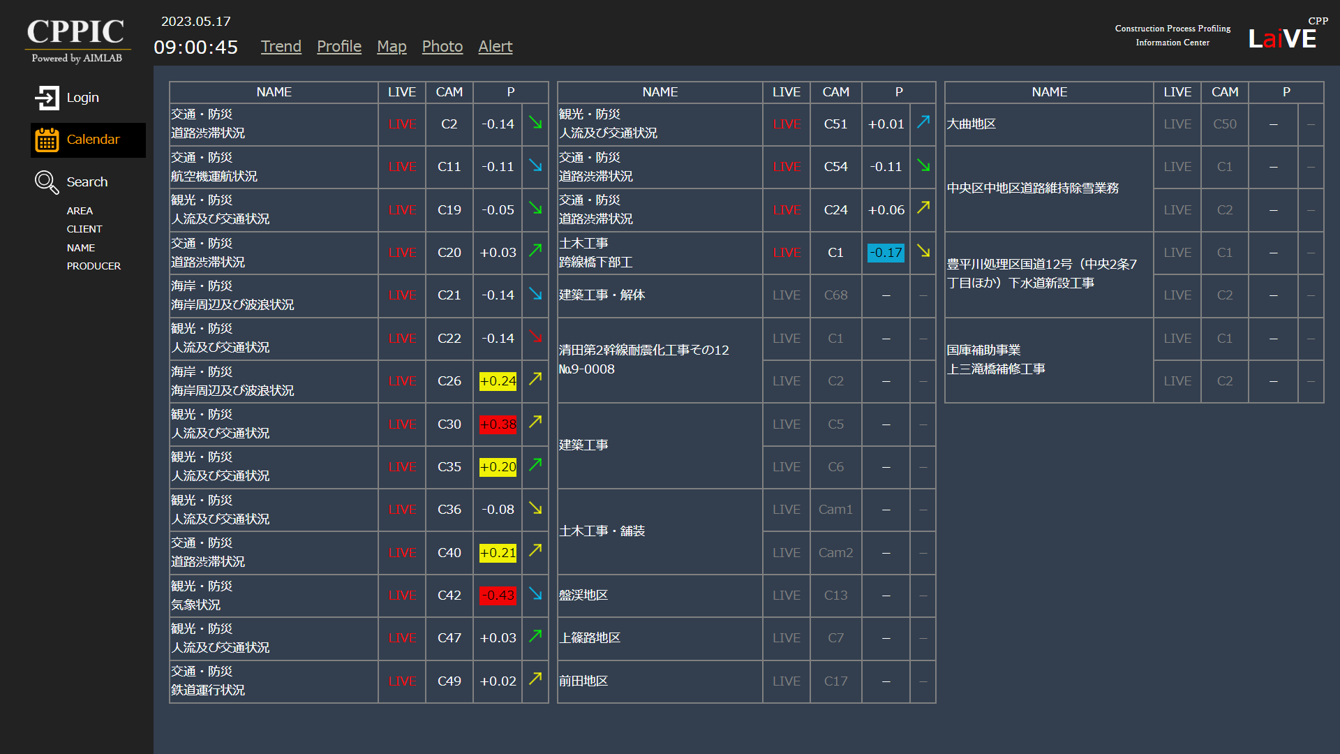 各現場(カメラ1台毎)の40日間分のプロファイルのトレンドを表示します。